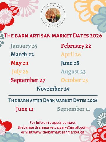Our 2026 dates have been released! To inquire about an application, please email us at thebarnartisanmarketcalgary@gmail.com, or click the link below. Applications open up two months prior, from the 1st to the 10th, for each date.